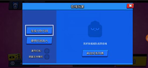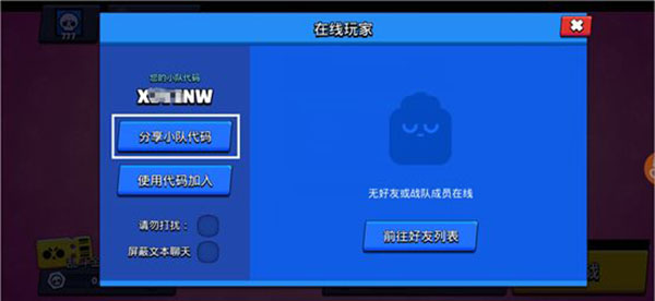 步骤2:代码生成——分享小队代码;您也可以使用小队代码加入其他小队。