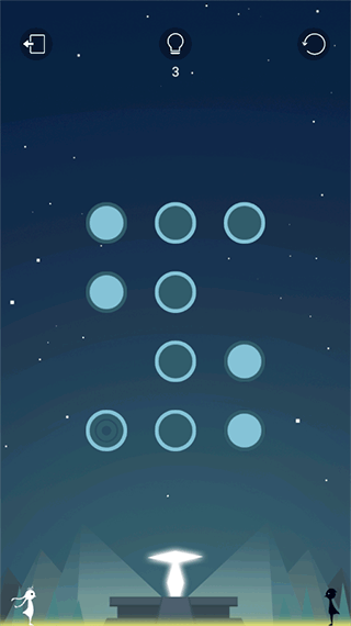 2、带有月亮的光圈是我们开始的地方,连接上下左右方向的光圈就可以改变它们现有的颜色,当屏幕上所有的都变为同一种颜色,无论是黑还是白都意味着同一个世界的产生。