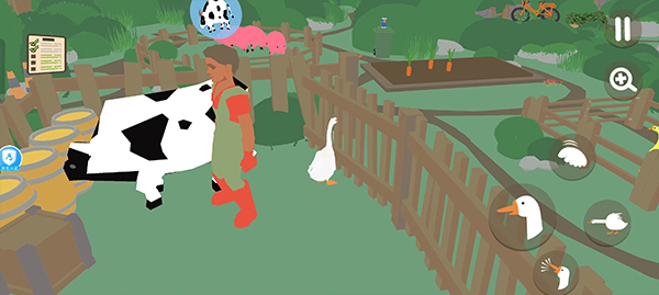 1、将鹅移动到牛棚的门旁边用嘴推开门,等牛跑出去;