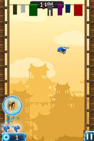 跳跃忍者英文名“Ninjump”是一款令人怀念复古的忍者扮演游戏,玩家将在房屋的墙壁上来回的飞檐走壁,通过不断的躲避迎面袭来的飞镖、鸟、忍者和黄鼠狼等,从而越爬越高。在途中会有保护盾为你提供一次失误的机会,当你在飞檐走壁的过程当中击落了3个飞镖或者是其他障碍物时便能触发终极究极大招,无视一切的大招让你面对困难的关卡设计也能轻松通过。另外,跳跃忍者灵动的背景音乐和越来越快的移动,使你能在清新简洁的地图上不断的挑战自己极限,喜欢忍者类型游戏的小伙伴一定要下载试试看!