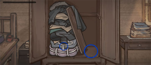 5、在点击布条后上方堆积的衣物会被移除,露出来第三个证据:断掉的木茬;