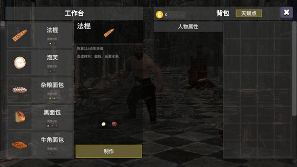 3、进入工作台,在对局中所收集的材料,在这里可以制作成各种食物和装备,这些东西在对局中都起到巨大作用;