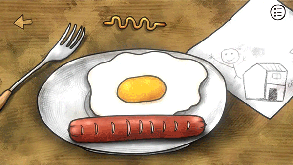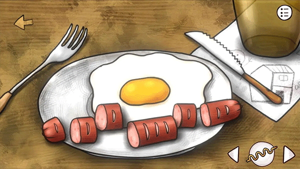 再次点击餐桌,获得带锯的小刀和密码111312(香肠被分成6块,每一块上的刮痕代表数字)