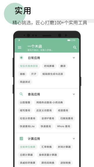 一个木函国际版,软件里面的工具分成了“日常工具”、“图片工具”、“设备工具”等六大类,每一类别下面都有十几种对应类别的工具,十分好用。