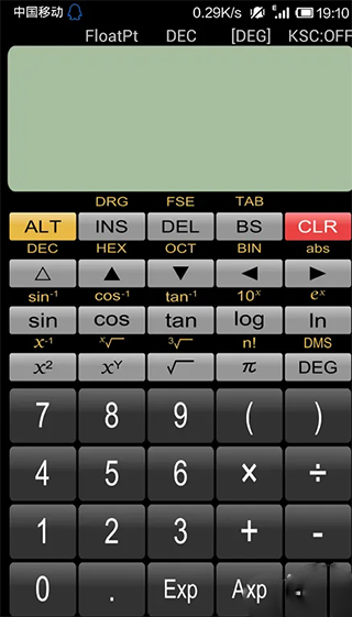 打开安装好的计算器,其界面很像中学时使用的计算器,特别是显示屏。上面按键的功能也和实际的计算器一样,总之功能很强大。