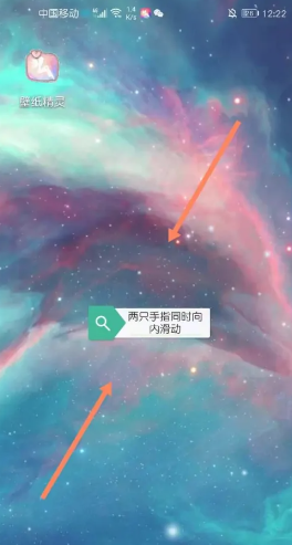 2、然后在桌面任意位置,两只手指同时向内滑动。