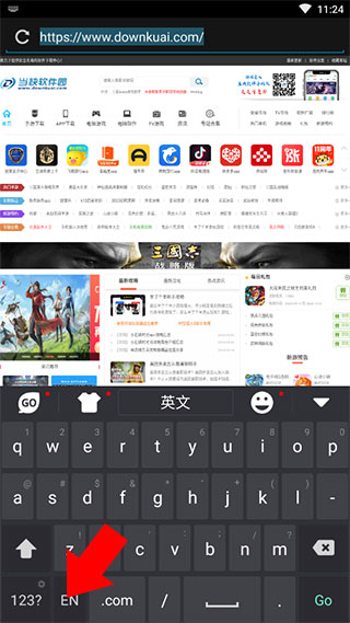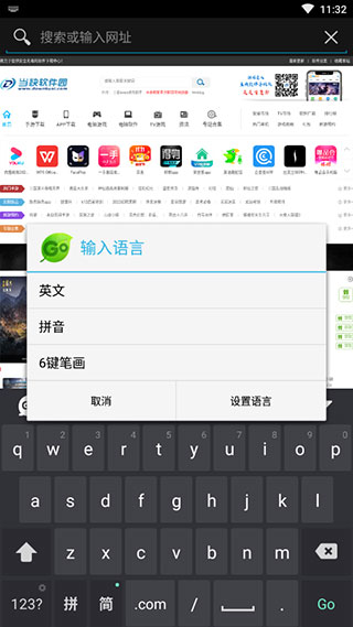 1、首先我们弹出go输入法,然后长按下方的当前语言选项(英语为en、中文拼音为拼、笔画为笔以此类推)