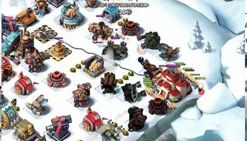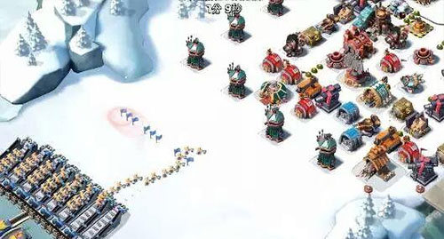 直接一个引导扔在护盾发生器上,接着下一船野人,然后再下其他七船野人,待野人走进防御筑的攻击范围内才开始放烟雾,集合的路上被建筑分流,导致野人的走位有些散漫,但是都没有露出烟雾,非常巧妙!