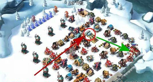 将野人登陆,然后引导到最近的一个防御上,这种操作登陆需要三发烟雾弹!
