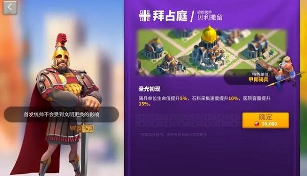 拜占庭 骑兵生命值+5%,石头采集速度+10%,医院容量+15%