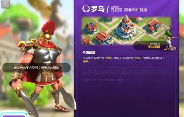 罗马 【步兵防御力+5%】、【部队移速+5%】、【食物采集速度+10%】