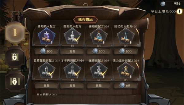 学院分可以在课堂左下侧课堂兑换里进入商店买东西,魔药的配方和材料,并且买满第一层才能解锁下一层(推荐大家尽快买满)。
