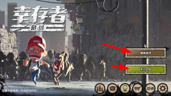 1、进入游戏之后,玩家可以选择继续游戏或者开启新的冒险