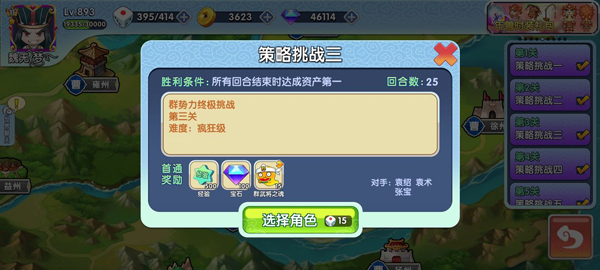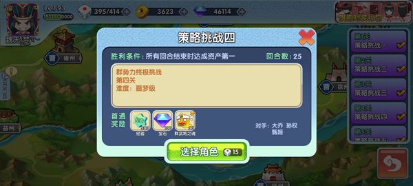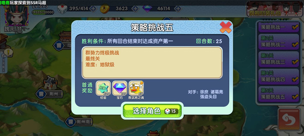 激斗模式:决斗是《富豪创三国》的特色玩法,激斗模式随机发满手牌、平均分配土地,适合喜欢激烈战斗的玩家