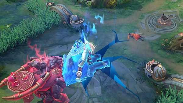 战斗到25分钟后,双方水晶处会出现水晶巨人,移动至地图中心,消灭对方水晶巨人即可获胜。既避免了耗时过长的鏖战,也为战局增加了变数,只要不放弃,就有机会逆风翻盘。