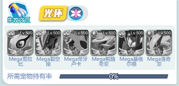 -Mega雪拉比+Mega裂空座+Mega帝牙卢卡+Mega帕路奇亚+Mega基格尔德+Mega洛奇亚;