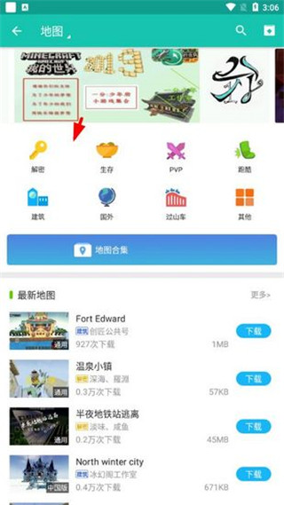 2、然后选择自己喜欢的地图类型,例如生存类地图;