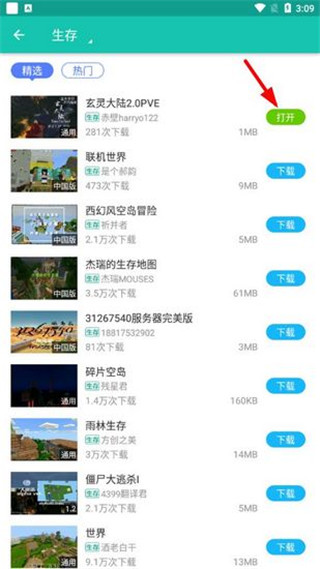 4、等地图下载好之后,直接点击【打开】,就可以自动启动我的世界游戏,然后玩家们就可以在游戏里体验该地图。