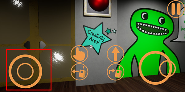 2、进入游戏后讲解一下如何操作,右侧摇杆为移动键,手指按钮为互动键