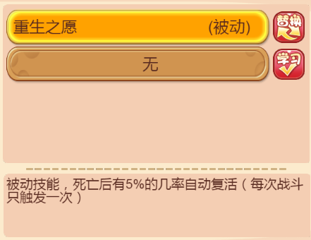 【重生之愿】 死亡后有5%的几率自动复活(每次战斗只触发一次)