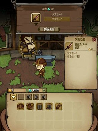 游戏特色包括随机生成的洞窟、限时逃脱卷轴、遍地宝箱但暗藏杀机、角色养成与装备收集系统,还有全新宠物陪你冒险。城镇中有巫婆、幸运转盘、铁匠等NPC提供各种服务,玩家可以移动、打怪、开宝箱、穿装备,避开陷阱并合理管理背包。