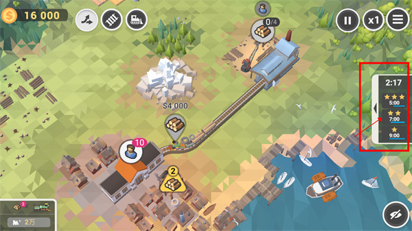 游戏亮点挺多的,比如可以扩大火车站建设,派遣不同火车运送货物赚钱;开辟新铁路通向世界各地,成为交通中心,还能收集各种火车。接受承包商的任务也是个挑战,得用最快效率完成才能拿到更多奖金。玩法很简单,点击开始选择关卡,了解任务需求,修建铁路、派遣工人,完成任务就能过关。