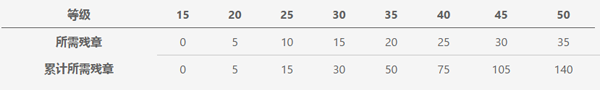 武学每5级为一个阶段,将需要数额不等的残章以解锁下一阶段的升级。所需残章数量如下: