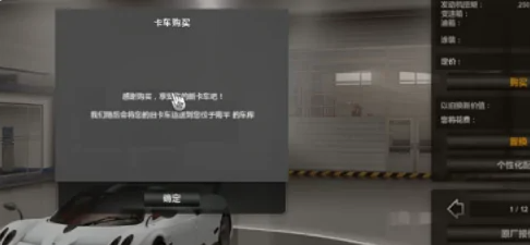 9、选择车库后,就可以购买汽车了,单击“确定”。