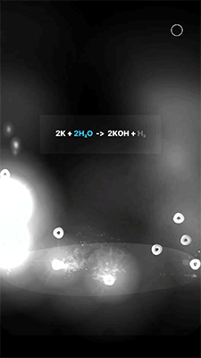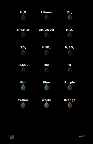 点击右上角的圆圈可以打开物品列表,App 内拥有 150 种化学元素,包括液态、气态和固态的化学物质。大家可以随心所欲地添加它们,尝试在不同环境下它们发生的不同变化,了解操作步骤,在实验中加深知识印象,顺便还能复习一下化学反应式。