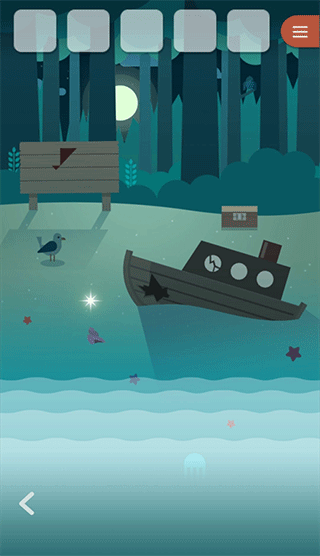 1、开局在一个岛上,点白光,得贝壳,箭头左走