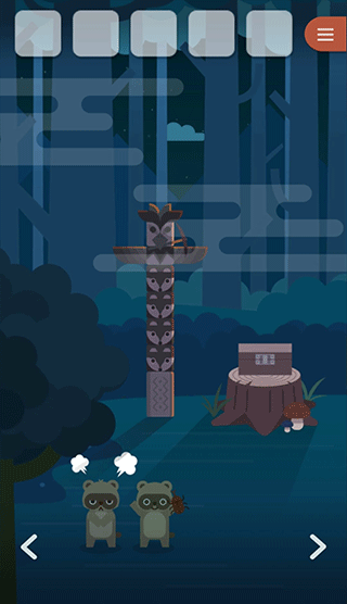 7、左边有两个小浣熊,点击他们两个左边的树,得到独角仙,给浣熊