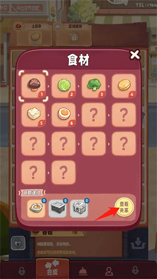 3、如图,订购的食物和厨具都在方框里了,可以开始合成了,