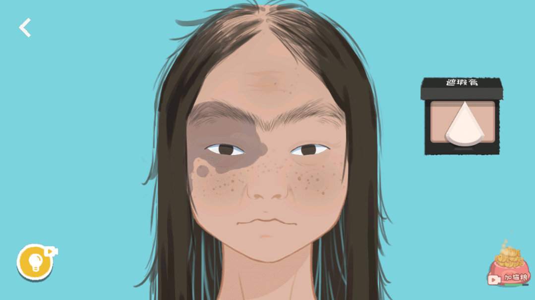 1、首先使用粉扑来让脸上的那些大面积内容消失,这个关卡中每次完成一项操作下一个操作就会出现,可以慢慢来。