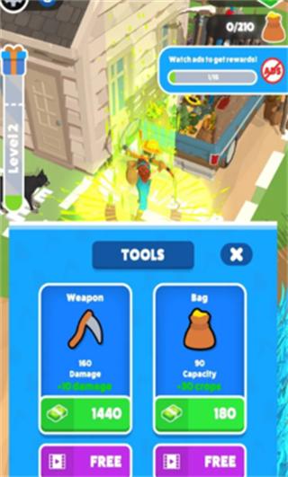 2、收割的农作物会自动进入你的背包,在背包数量收集满后,前往指定区域,也就是这里进行出售,随后在另一个区域升级你的镰刀,镰刀的升级可以加速庄稼的收割。