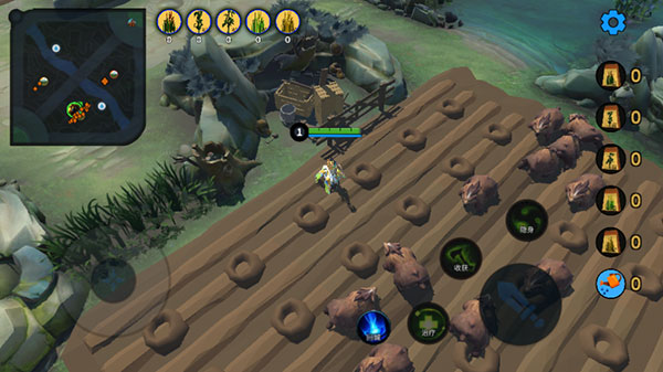 3、但是在这个过程中会有野怪来攻击你,你可以建造防御塔攻击野怪,也可以用你的技能快速收获