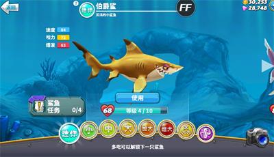 1、可以收集各有8种不同大小的20类鲨鱼品种,扮演敏捷的双髻鲨,甚至到著名的大白鲨!