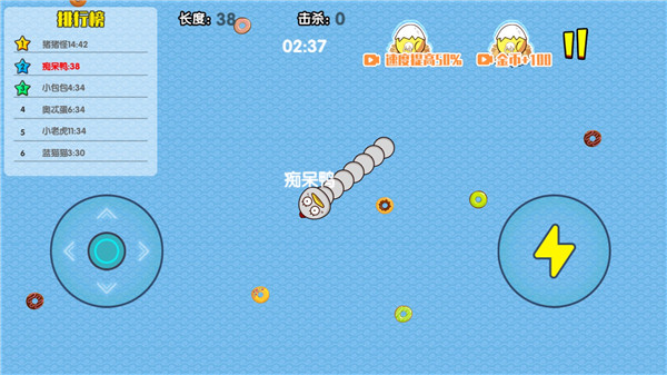 关于怎么得高分,其实有几个小技巧:前期要拼命发育,吃能量块让自己变长;中期混战的时候别急着追杀第一名,多找机会捡软柿子捏;后期抢分期就更刺激了,大家都在抢能量,很容易连环死亡,这时候只要捡现成的就行。玩这个游戏真的特别考验策略和反应力,不过一旦掌握节奏,轻松就能拿MVP!