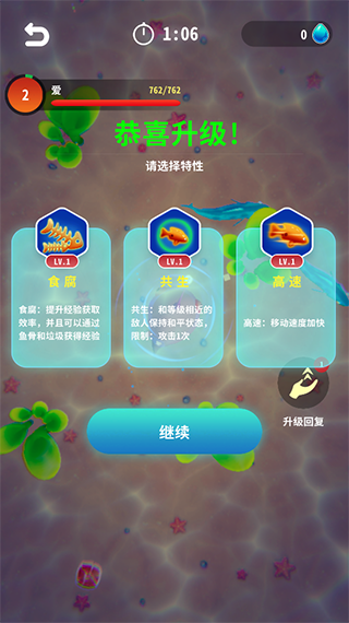 这款游戏叫“不可思议的催眠进化”,听起来挺有意思的。玩法很简单,就是“大鱼吃小鱼”。玩家通过滑动屏幕操控小鱼移动,遇到能吃的生物就靠近它,这样就能升级变强。游戏里还有各种有趣的技能,比如食腐、硬壳、电击等,这些都能帮助你应对不同的挑战。