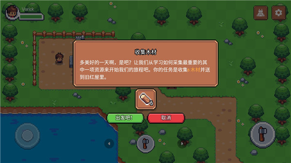 3、进入阶段一游戏,里面的任务就是收集木材,玩家们加油哦。
