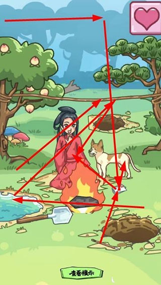 5、将挖出来的书给狗,并将狗移动到树上,就可以得到桃子,桃子给美女。