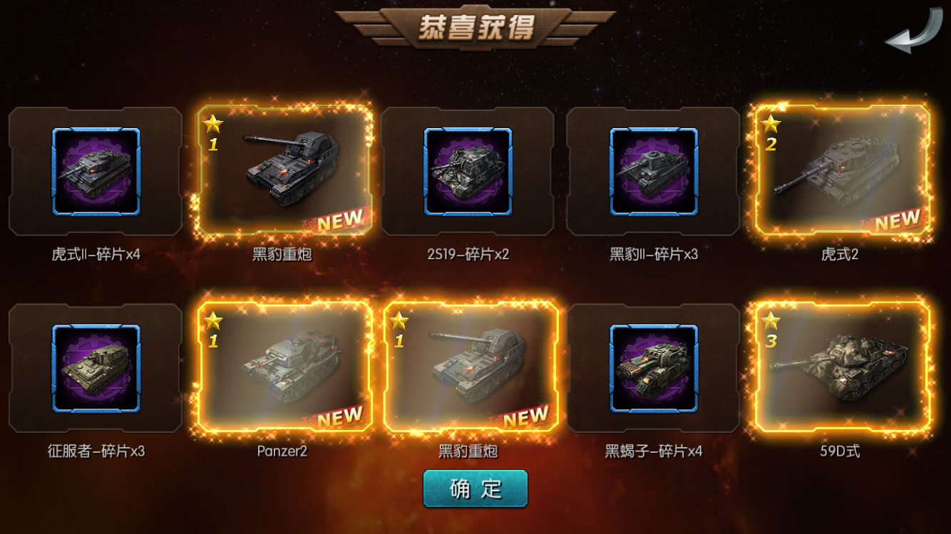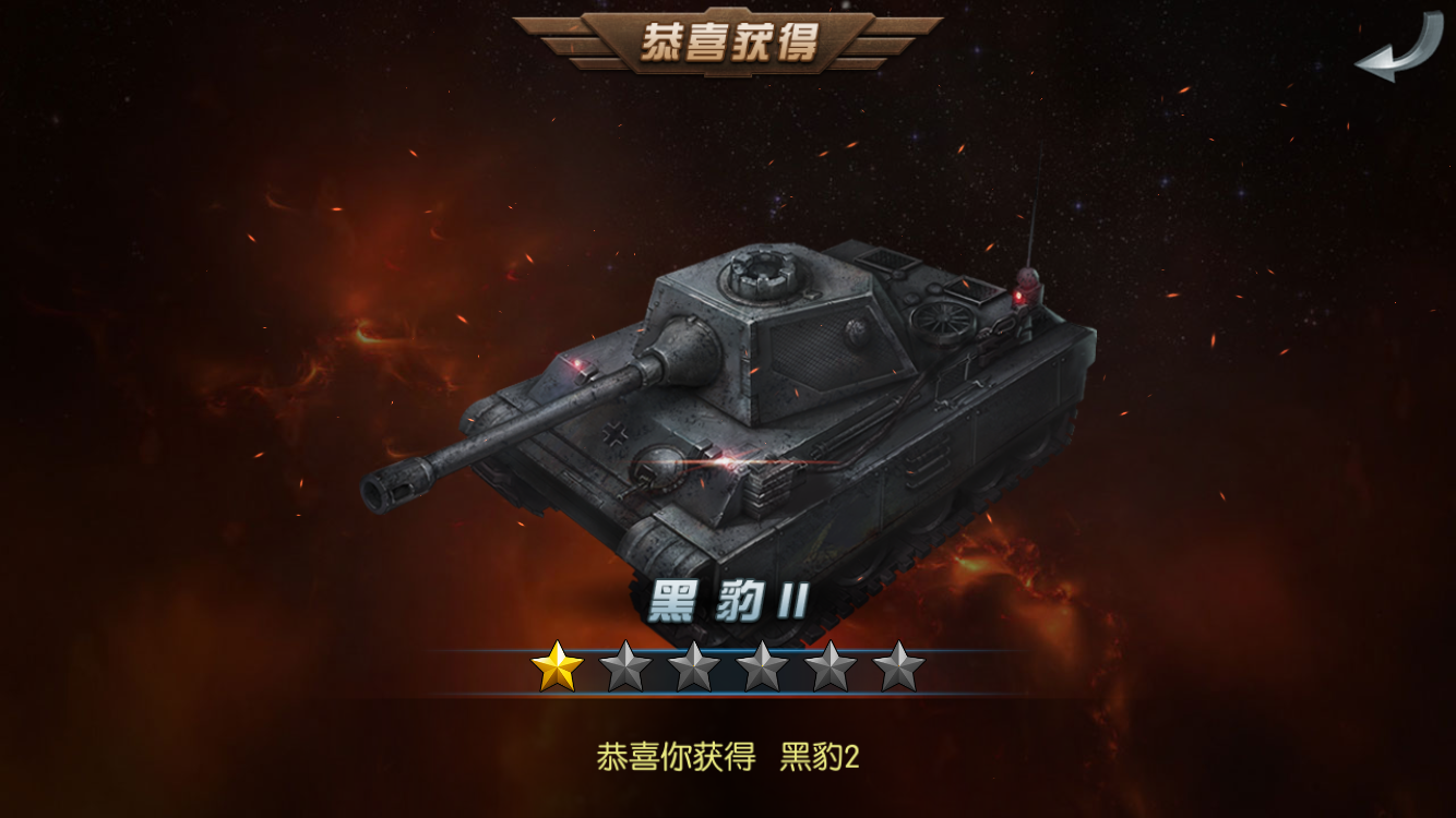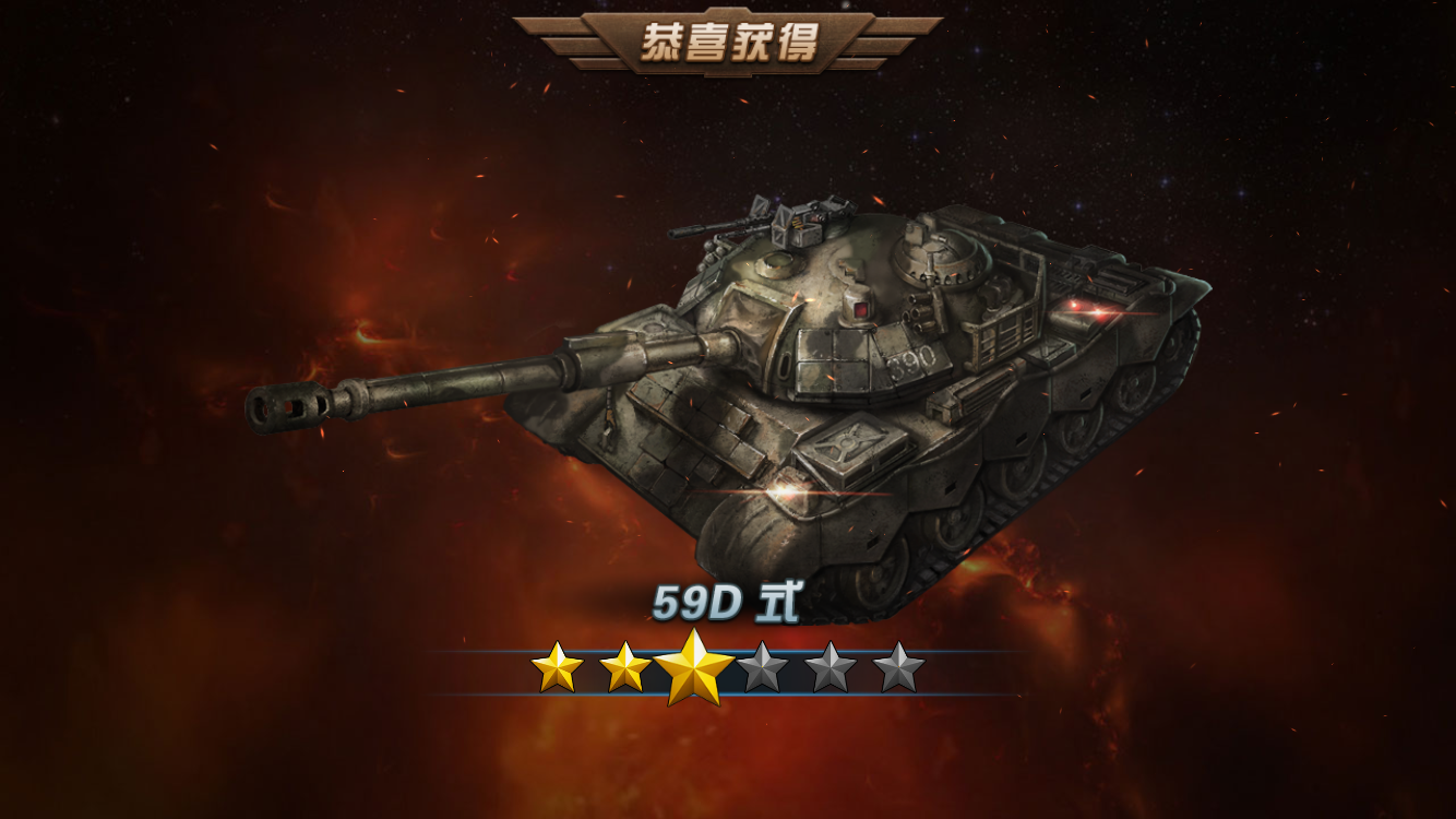 如果抽一次的话,根据概率来获得坦克,运气不好就只能抽到坦克碎片了。运气好,自然可以获得坦克,上图展示的就是运气爆表后抽得的三星坦克。