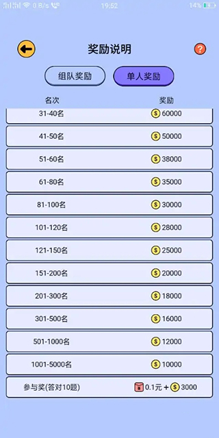 5、通过【单人奖励】答对10题可以获得少量的红包劵,如下图所示。