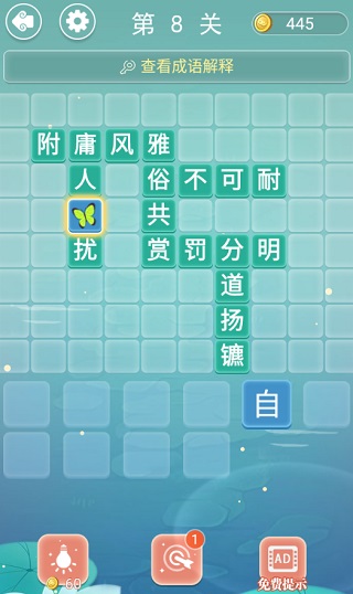 成语接龙是一款很有趣的益智小游戏,玩法简单但充满挑战性。游戏里有各种精心挑选的成语,玩家需要在界面上快速找到对应的成语来完成接龙。游戏界面设计得很漂亮,背景古韵十足,音乐也很轻松,给人一种非常舒适的感觉。每次找到成语后,游戏还会自动解释意思,这样边玩边学,既有趣又有收获。