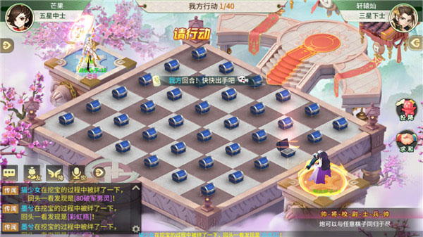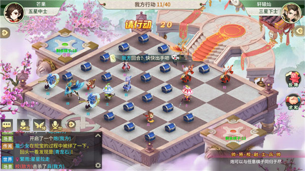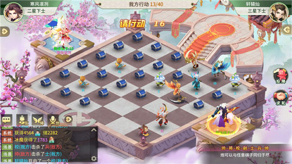 下棋不仅可以娱乐,当前携带的宠物在每一次击杀对面棋子时还能获得经验哦。当棋局陷入僵局,而仙契师又不能浪费时间下满40回合的话,是可以发起求和或者主动投降的。