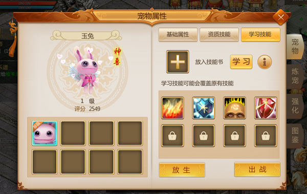 3、新宠物的等级回到1级,进化等级、强化等级、加点都将清零。