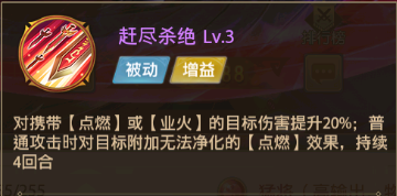 此技能对中了【点燃】或【业火】效果的目标伤害会提高,普通攻击还会对目标附加无法净化的【点燃】效果。