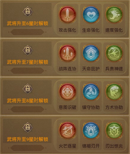 物追、物攻、迅捷、必杀,优先选择物追和物攻。物追能让你打出二连击造成更高的伤害;物攻则是因为是战法专属,可以避免与将印技能冲突。
