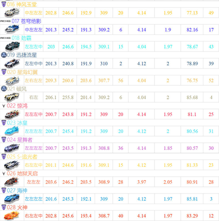 t3级别的赛车在目前游戏中使用的人数相当少,其实裂空严格来说强度还要再下降一个档次,因为这辆车相比帝王和月光女神这两辆免费车来说属性更差