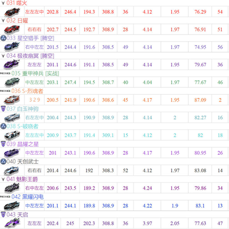 t2的标志就是最新的点券A车,比如说天创武士、金刃黄蜂等,其他都是同强度的早期钻石A车,这些赛车是目前平民玩家的主流用车,实战强度还是比较高的
