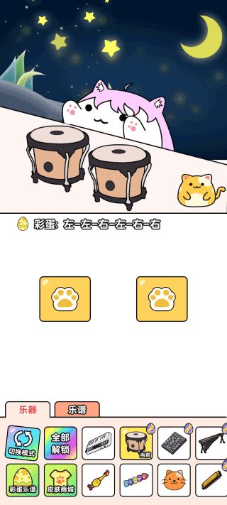 《节奏猫咪》是一款以可爱猫咪为主题的音乐点击游戏,玩法多样且有趣。你可以弹奏各种乐器,甚至还能养成猫咪开音乐会。游戏里有超多彩蛋,比如通过特定节奏触发神曲,像是“两只老虎”、“好日子”等经典旋律都能玩出来。最让我觉得有意思的是,这些小猫还会搞音乐创作,甚至能用双截棍打飞暗器,完全停不下来!操作简单,但音乐编辑功能又很强大,可以自己搭配乐器和节奏,听起来挺有成就感的。对了,游戏还有闯关模式,挑战反应力也是个不错的玩法。虽然更新日志里提到了防沉迷SDK的更新,但这也说明开发者在细节上越来越用心啦!